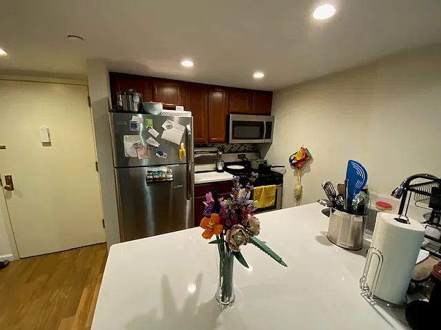 Very large studio with quartz countertops and stainless steel appliances including dishwasher. Newer building on the north side of Sunnyside close to the gardens, restaurants, pubs and shopping.