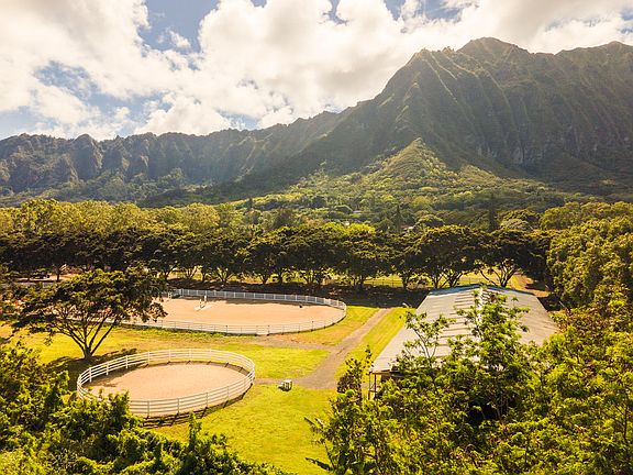Waimanalo Equestrian Center, comprised of 8.9 acres of level fertile land, is at the heart of a once majestic 30+ acre horse facility built in the 1980's. With sweeping panoramic Ko'olau mountain views, it is a perfectly situated rectangular lot with 3 separate entry/exits. Recently rebuilt and restored to its early majesty, one cannot help but revel in its beauty. From the vast horse pasture paddocks to the poll barn, arena, round pen and event structure, this amazing property functions under a Conditional Use Permit allowing for multiple business ventures. The site is home to a brand new IEF jumping arena complete with new fencing, drainage, footing and event structure. A tremendous turn key opportunity. There are two large residences on property tastefully appointed with thoughtful finishes. The farm dwelling or main residence is a 4bed/3bath/3car garage. The second residence is a 3bed/3bath/2car garage. The residence barn serves as a caregiver quarters. A MUST SEE...you do not want to miss this opportunity to own one of the very best equine facilities on the islands!