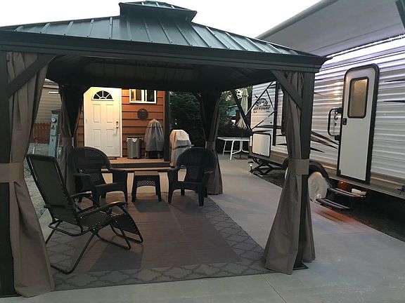 Beautiful landscaped lot at Skookum Rendezvous ready for your RV or Park Model! Nice concrete pad with gazebo, finished shed with bathroom, w/d, and lots of storage. Shed can be used for additional sleeping quarters. Steps away from the lodge, green space and walking paths. Lodge features: indoor pool, hot tub, sauna, laundry facility, fitness room, kitchen, business center and entertainment area. Private boat launch and day docks within the resort. HOA $1150/yr. 2018 Jayco Jayflight SLX 232 RBW can be sold outside of sale for an additional $15,000.