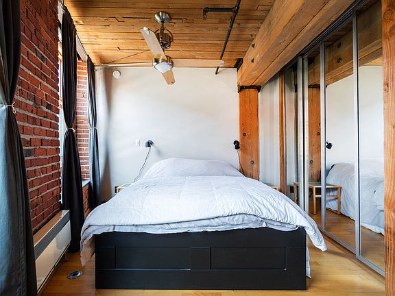 Oversized south-facing windowsOriginal brick detailsExposed old-growth wood beamsOpen-concept layoutGourmet kitchenHuge rooftop terrace