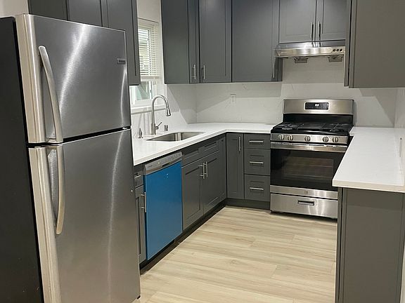 This lower unit has brand new paint, stainless steel appliances (refrigerator, oven, dishwasher), in-unit washer/dryer, all new energy-efficient windows, dimmable recessed lighting, and split AC/heating units in all rooms. New LVP flooring also installed. Bathroom has been fully renovated with modern amenities.