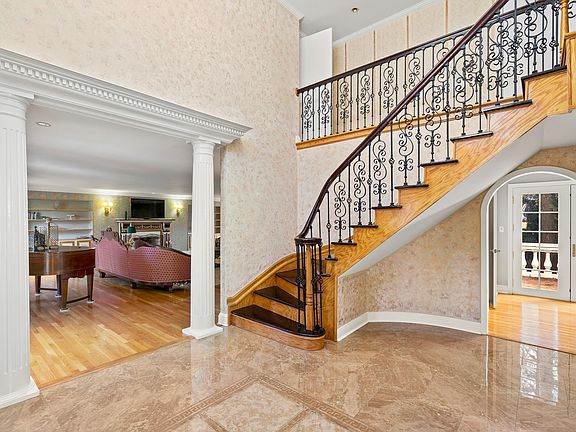 GREAT NECK ESTATES | Grand and Stately Colonial on a quiet street within The Village of Great Neck Estates. This one-of-a-kind home, sitting on over a third an acre features design and glamour throughout the interior, with high ceilings, incredible flow, immaculate detailing with crown moldings, wainscoting, gold filigree painting, custom hand-painted walls and fireplace mantles, and hardwood floors (where seen) throughout. With 4 bedrooms and 4 and 2 half bathrooms, regal sized living room with wood burning fireplace and 3 sets of French doors to back patio, formal dining room, family room with stone gas fireplace and breakfast nook with 3 sets of French doors to back patio, additional office with side entrance, powder room, mud room, and access to the garage, primary bedroom suite with wood burning fireplace , balcony and walk in closet, a bedroom en suite, and an additional 2 bedrooms, and full bath complete the 2nd floor. Additional features include: a finished lower level, brick back patios, lush landscaping, and stunning views; all within the comfort and privacy of your own space. As a resident of Great Neck Estates you will have access to the Waterfront Park, offering an Olympic-sized swimming pool, kiddie pool, children's playground, indoor and outdoor tennis courts, baseball and soccer fields, basketball and handball courts, ball field, docks, mooring, community events, summer camp, and more. *CHOICE OF GREAT NECK NORTH OR GREAT NECK SOUTH.