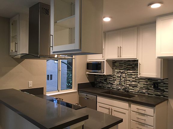 Completely remodeled and now ready for occupancy ... Contemporary 2 bedroom, 2 bath condo with gas fireplace, new flooring, dual paned windows, lighting and completely updated open kitchen - Stainless GE appliances, Quartz counters, Custom cabinetry & oversized undermount sink. Amenities include deck off of living room with bay views, solar heated pool (May-Oct), sauna, covered parking and storage. Sited close to bike trails, transportation and shopping this conveniently located condo is an easy commute to SF and is always the last stop for Super Shuttle pick-ups to SFO. Owner pays for water and trash pick-up. Tenant pays for PG&E, satellite/cable and internet service