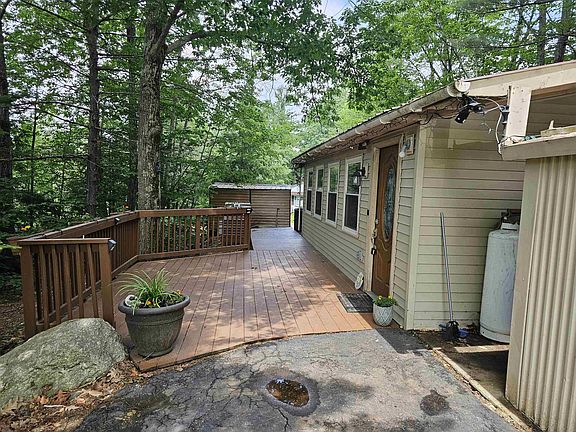 This 1975 Artcraft Centurion mobile home features a combination kitchen/dining/living area, with 2 bedrooms, 1 full bath, 1 3/4 bath, laundry area, and enclosed porch with separate heater within a mile and half of downtown Jaffrey. Kitchen cabinets have been recently painted, some cabinet doors replaced, and granite countertops added. Lot features 2 storage sheds, 2 driveways for parking, and surrounded by pine trees. Monthly fee covers land lease, tree removal, and road plowing in the winter. Homeowners are responsible for lot landscaping, and plowing their own driveway. New siding as of 2022, new metal roof in 2021, and all windows except back bathroom also recently replaced. Town water lines replaced in 2020 and sewer lines replaced in 2022.