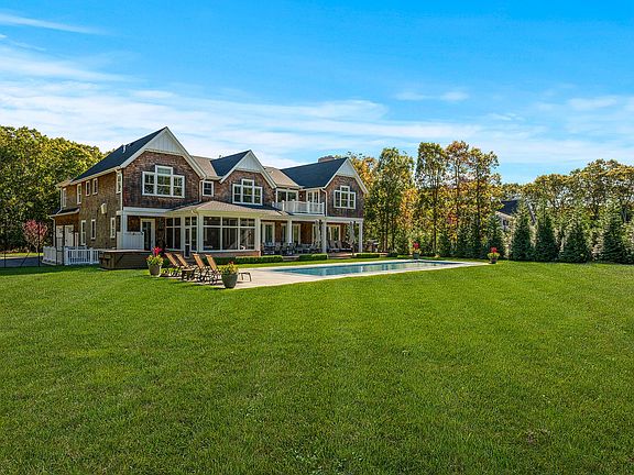 Welcome to this recently built custom home nestled in the charming Village of Quogue. Boasting 6 bedrooms and 8.5 baths, this spacious 7600+/- sq ft residence, spanning three levels, offers abundant room for both relaxation and entertaining with a thoughtful floor plan. Upon entering, you'll be greeted by a two-story foyer with soaring ceilings. The open layout is bathed in natural light from the multiple deep windows and doors that seamlessly connect the interior to the expansive deck and lush grounds. Adorned with shiplap wainscoting, 4-inch white oak floors, and sleek transitional trim throughout, the home exudes a timeless elegance. The great room, complete with a wood burning fireplace, effortlessly flows into the custom chef's kitchen, creating a perfect space for gathering. The kitchen is a culinary masterpiece, showcasing Sub Zero and Wolf appliances, quartz countertops, large island with seating, and a convenient wet bar with both wine and beverage refrigerators. Two walk-in pantries ensures ample storage space. Convenience abounds in this home, with a three-floor elevator, first and second-floor laundry areas, a mudroom, an attached oversized two car garage, and a first floor junior primary suite with its own ensuite bath. The second floor offers an additional sitting area with a second entertaining bar and balcony. The generously sized primary suite, features two walk-in closets, gas fireplace, and a bathroom with a separate shower, soaking tub and two vanities. The primary suite also has access to the rear balcony. Three en suite guest bedrooms all with their own bath and large designer closets offer plenty of accommodation options for guests. An additional bedroom/bonus room includes a full bath and open space for a bunk room, playroom or gym. The substantial lower level hosts a full bath and open space that can be a gym, home theater, and/or a playroom, plus has potential for two additional bedrooms. A walk out entrance connects this lower level to the inviting pool area and backyard. Outside awaits a fully landscaped paradise, complete with an outdoor shower, a covered porch, and a 16x50 heated saltwater gunite pool and hot tub. An additional screened porch offers a relaxing spot to enjoy the fresh air. Also, a generator offers peace of mind. A greenhouse is ready for gardening needs or can be used as an artist studio. Situated on a cul-de-sac, this home offers a serene and private setting. The 1.6 acres is comprised of a 1.2 acre lot (Tax Map #0902-4-2-047) and .4 acre lot (Tax Map #0902-4-2-066.01). Don't miss the opportunity to make this Quogue gem your own.