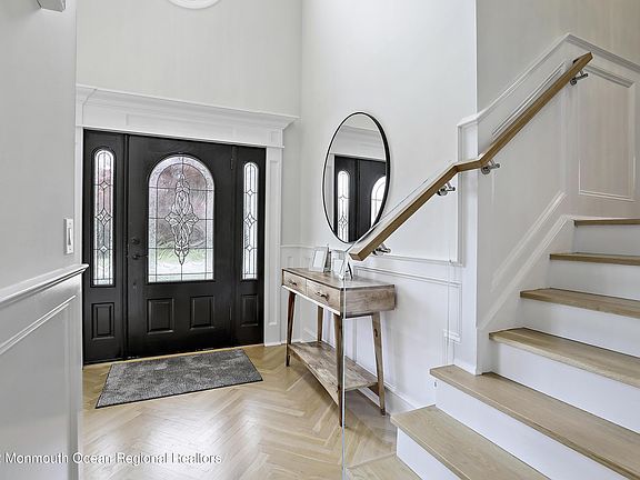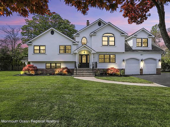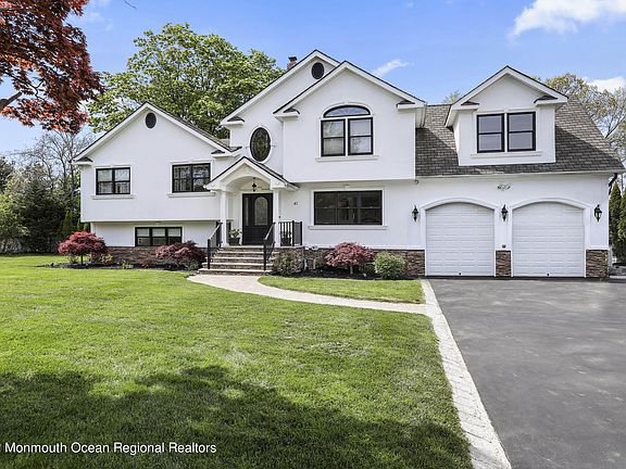 Exquisite residence in West Long Branch offers custom millwork, two story foyer, glass railings, high end finishes & fantastic open floor plan w/high ceilings & white oak hardwood floors throughout. Immaculate gourmet kitchen w/custom cabinetry, SS appliances, waterfall quartz center island w/seating opens to dining room w/wood burning fireplace. Great room w/soaring high ceilings and a wall of windows, rec room above 2 car garage. 6 bedrooms, 4 full and 3 half baths. Finished lower level w/kitchenette and walkout accesses to a private backyard paradise featuring Hampton style inground pool, Outdoor cooking, Tiki bar, vegetable garden, playground, deck w/ glass rails and a gazebo.