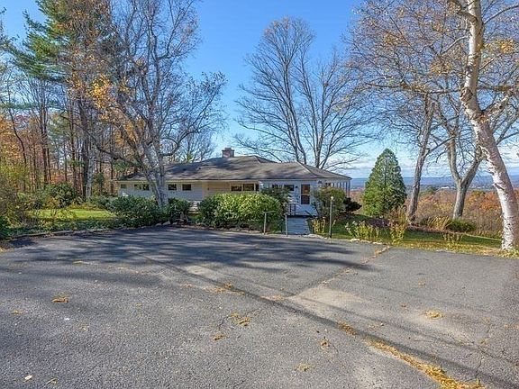 Set atop a gently rolling 5.84-acre parcel, this exceptional 1951 mid-century modern ranch offers panoramic distant views that stretch across the landscape. This home has been lovingly cared for by the same family for 65 years. Inside you will find a large communal living room, sunroom, 2 bedrooms, office, 2 full baths with expansive windows that fill the home with natural light. The daylight lower level offers a kitchen, dining/entertainment area, den, bedroom, full bath with direct access to the patio and pool. Located within easy reach of colleges, downtown Amherst, trails, and area amenities, the home strikes a rare balance: peaceful seclusion with convenient access. If you’ve been searching for timeless mid century character, generous land, and a setting that invites you to pause and take in the distant panorama, this is your opportunity. Offering serenity and endless potential—ready for you to bring your own personal expression and individuality to this one-of-a-kind home