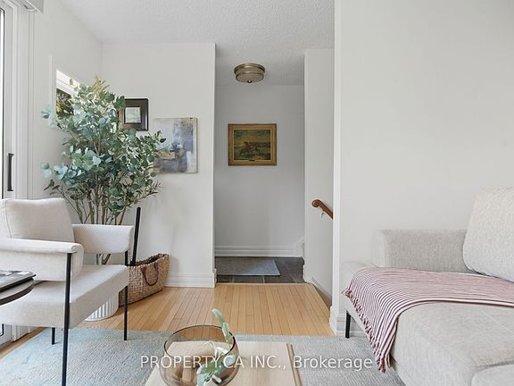 Welcome to Your Hidden Gem in the East End! Perfectly tucked between The Beach and Leslieville, this charming home offers the best of both worlds. Head left to the boardwalk, right to Leslieville's shops and dining, or hop on the DVP, Gardiner, or Eastern Ave just minutes away. Set on a quiet cul-de-sac on Battenberg Avenue, this home feels like a private oasis. The tree-lined street ends at a neighbourhood park for kids and dogs, with a laneway exit to Queen Street East and Orchard Park. Walk to everything LCBO, Beach Cinema, History music hall, shops, gyms, yoga, dance studios, and some of Toronto's best restaurants. Woodbine Park, the waterfront, and weekend festivals are steps away, yet at home you'll enjoy remarkable peace and quiet. Inside, character and function meet seamlessly. The primary bedroom offers a walk-in closet and retractable skylight, while the second bedroom includes a built-in loft bed/play zone or extra storage perfect for kids or teens. At the centre, the modern kitchen with custom banquette brings everyone together, while a sunken family room is ideal for movie nights. The main floor living room opens to a flagstone patio your private retreat for sunny afternoons or dinners under the stars. Bonus features include private underground parking *right beside two huge storage lockers*, with maintenance fees covering roofs, windows, patio doors, grass cutting, snow removal, and garage upkeep. TTC streetcars and bus connections are around the corner, making transit a breeze. After 25 years of ownership, its easy to see why this home has been so loved whether you're a first-time buyer or looking to upsize, this is the perfect place to start your next chapter.