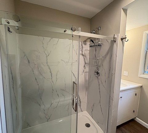 Small deckUpdated bathroomWalk-in showerCozy outdoor retreatBright new kitchen