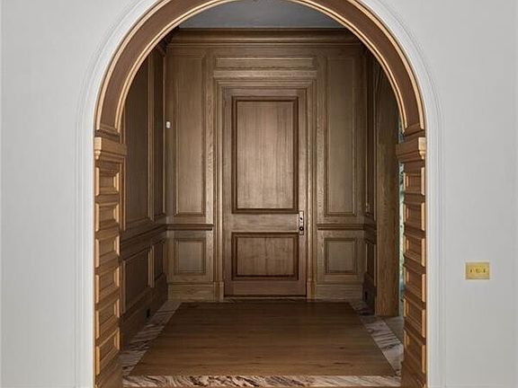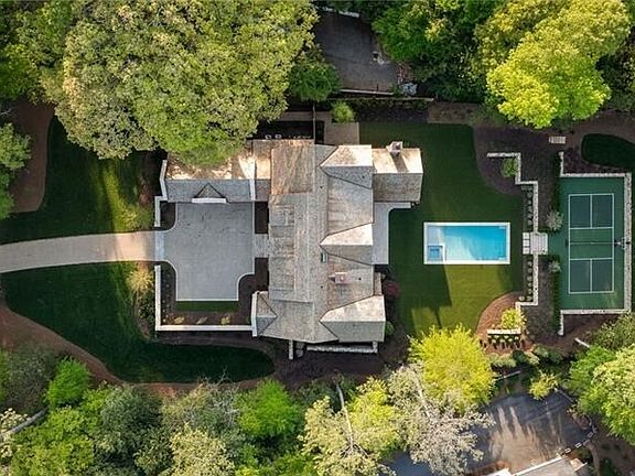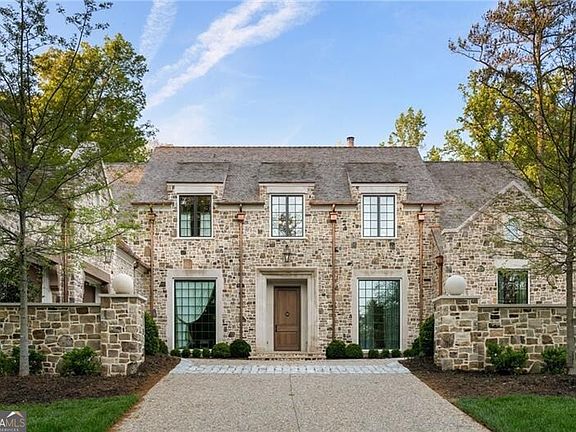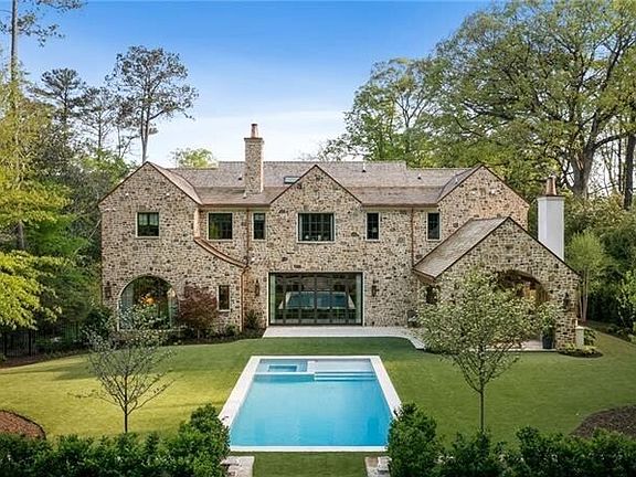 Located in the prestigious Tuxedo Park neighborhood of Buckhead, this 7-bedroom estate is a masterful blend of timeless elegance and modern luxury. Designed with exterior architecture by William T. Baker, refined interiors and specifications by SOURCE, and expertly built by Cole Construction, the home evokes the charm of a classic English manor. A striking fieldstone facade, hand-carved limestone accents, and a cedar shake roof lend an inviting, enduring character to this architectural gem. The interior features 12-foot ceilings and blends traditional charm with contemporary flair. Venetian plaster walls, marble accents, and custom wood paneling create an inviting, sophisticated atmosphere. The spacious foyer opens to a cozy living room with a sculpted plaster fireplace and herringbone surround. The chef's kitchen features sleek appliances, brass fixtures, and Kingdom cabinetry, flowing seamlessly into a charming scullery with a checkerboard floor. Decorative plaster ceilings add character to the dining room and primary bedroom, while the primary bath boasts a dramatic barrel arch and a jewel-box freestanding shower. The main-level primary suite also includes dual closets and a spa-like bath. Upstairs, five additional bedrooms, each with marble baths and classic fixtures, offer hotel-like comfort and ample space for family and guests. A playful bunkroom completes the family-friendly layout. The fully finished lower level offers the ultimate in relaxation and convenience, with a media room, bar, gym, sauna, cold plunge, and even a golf simulator. It also features an au-pair suite with a separate entrance, providing privacy and flexibility. The home is equipped with state-of-the-art security, including wired systems and cameras for peace of mind. Phantom speakers are built into the ceilings of the kitchen and family room, and wall speakers are installed on the porch for the perfect soundtrack to any occasion. Outside, the fully fenced backyard is a private oasis with a covered porch featuring a fireplace and stainless-steel gas grill, a sparkling walk-out pool, sports court, and lush landscaping by Land Plus. This estate offers over 1.5 acres of serene, resort-style living, perfect for both relaxation and entertainment.