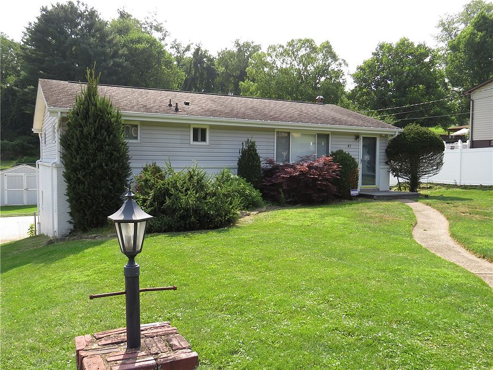 3 Bedroonm 1.5 bath ranch located on a little over a half an acre. Large storage shed and above ground pool sits within the entirely fenced in backyard. Relax on the back deck constructed of maintenance free material equipped with a retractable roll out awning. Cement driveway extends all the way behind the back of the house with an extra large turn around pad for you to be able to maneuver into the integral one car garage. Newer spacious eat-in kitchen with updated cabinets and counters. All appliances convey with sale. Full pantry closet located in kitchen. Fresh paint in bedrooms along with updated flooring in some of the bedrooms. Finished basement and half bath located in the basement. Plenty of storage and separate laundry room area. Walk out access from the game room to the backyard.