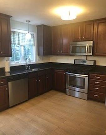 Available 7/1/20 Beautiful Barrett Farm townhouse condominium located in North Billerica close to Route 3 and 495. Bright and peaceful this is a two bedroom, one and a half bath, end unit townhouse, with tile floors throughout the main living level. Park in your attached garage and be welcomed home to a beautifully maintained custom kitchen with stainless appliances and granite counters. Dining room kitchen combo leads to your private deck with wooded views. Upstairs you will find two larger bedrooms and a full bath with washer and dryer combo.