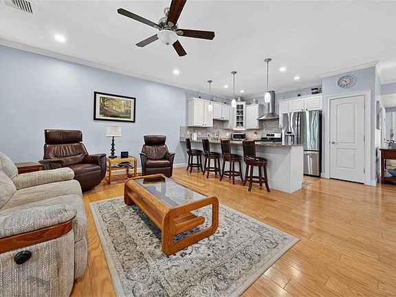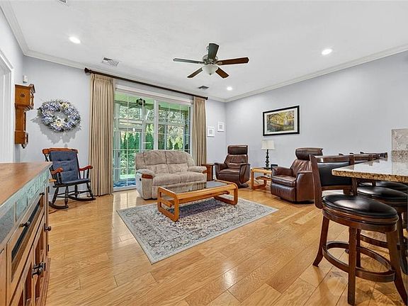 Pristine one level end unit in the desirable 55+ community at The Residences at Stone Creek. Stunning floor plan offering an open flow in the living, kitchen an dining area offering beautiful details! Soaring ceiling’s , crown moldings, chair rails flow through the dining room completed with a large side window to offer natural light. The kitchen offer's a beautiful granite peninsula, stainless steel appliances ,attention to detail flows through the kitchen with white cabinets and glass curio is the pristine place to entertain or host family gatherings. Primary bedroom offers a large walk-in closet , full bath with a granite vanity ,double sinks and shower with glass doors. Situated off the front hallway you will find a 2nd bedroom, and a main bathroom. Always wanted a space to relax , read a book or listen to nature? This unit offers just the perfect spot beyond the glass sliders you will find a screened enclosed porch to enjoy a peaceful setting. This condo has all the amenities you may be looking for laundry in unit , central air ,remote blind on slider , gleaming hardwoods, Generator an 1 car garage! Centrally located with easy access to Rt. 146, 295 and 95 plus , easy commute to Providence and Boston!