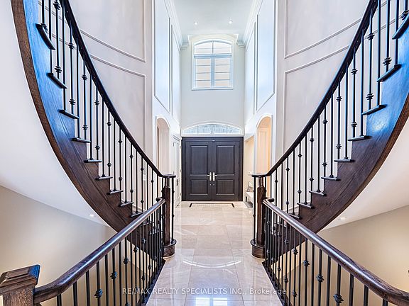 Exceptional Custom Estate Home Offering Over 7,000 Sqft Of Finished Living Space, Designed With Premium Upgrades Throughout. Featuring A Grand Double Curved Staircase With Wrought Iron Pickets, Soaring Ceilings, Hardwood Flooring, And Detailed Custom Paneling. The Main Level Showcases A Gourmet Kitchen With Wolf, Miele, And Sub-Zero Appliances, Quartz Countertops, Custom Cabinetry, A Butlers Pantry, And An Oversized Breakfast Area Overlooking The Backyard. The Living Room And Library Feature Custom Coffered Ceilings And Smooth ceilings throughout. The Great Room Includes A Feature Wall With Gas Fireplace. Additional Main Floor Features Include Oak Service Stairs To Basement, Separate Service Entrance, And Extra Closet Space. Upstairs, The Primary Bedroom Offers A Spa-Inspired Ensuite With Heated Floors, A Private Sitting/Lounge Area, And Custom Walk-In Closets. A Secondary Bedroom Also Features A Private Ensuite With Heated Floors And Its Own Separate Sitting/Lounge Area, Ideal For Multi-Generational Living Or Guests. All Secondary Bedrooms Are Generously Sized, Each With Ensuite Or Semi-Ensuite Access. The Laundry Room Is Finished With A Custom Waterfall Island Providing Ample Storage And Folding Space. Fully Finished Basement Includes A Home Gym, Recreation Room, And Additional Storage. The Backyard Features A Heated Saltwater Pool With Automatic Safety Cover, Irrigation System, Covered Porch, And Exterior Lighting. Additional Upgrades Include: 14-Mil Security Window Film Installed On Key Doors And Windows, Full Exterior Surveillance System, Motorized Chandelier Lift System, Central Vacuum, Two Separate Double Garages (Total 4-Car Parking) & Professional Landscaping With Irrigation System.