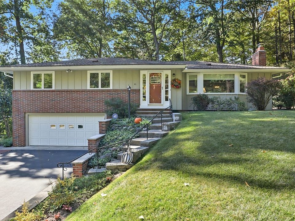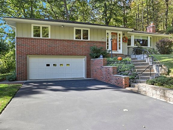 Nothing to be said other than Incredible architecture & outstanding appeal. Close to 1500 sq ft brick & frame ranch w/ 3 bedrooms & 1.5 baths, sitting on a breathtaking lot of privacy. This beauty as you enter invites you into subtle elegance, the formal living room sits in the front of the home with gleaming hardwoods & wall of windows. Wood burning fireplace w/ wonderful brick accent can easily be turned to gas. This leads to your formal dining room, neutral and inviting, opens onto your kitchen which has been totally remodeled 2013 from counters to cabinets to tile backsplash & newer appliances all set off by your shining Parquet flooring. Take the hall to your separate bedroom area and you have a remodeled 1/2 bath 2020 with Kohler comfort height toilet, new vanity and ceiling fan, remodeled full bath 2022 gutted and rebuilt from drywall out, tile floor, walk in shower w/dream-line glass door, Kohler shower system and comfort height toilet, brushed nickel accessories and custom vanity. Primary bedroom with hardwood flooring & newer Marvin infinity sliding patio door leads to your private rear lot. 2nd bed ample size and 3rd bed remodeled for use as office with built-in shelving. Updates include: 50 yr shingle roof 2006, garage glass block window 2019, Anderson front entry door 2010, soffits, fascia board, gutter and downspouts 2011, Marvin infinity windows 2012, Deck & 3 season porch 2011, furnace 2023, 150 amp electrical 2013, Hot water tank 2014, Deck & 3 season porch 2011, Septic system replaced 2006, Driveway repaved Dbl Wide, 2016, reconstructed front entry steps 2015, Hardscaping 2015, cemented concrete block retaining walls along driveway & front steps, LL 1/2 finished adding about 300 sq ft to living space, Garage glass block window 2019, Lift-master garage door drive w/ remotes & keypad 2016, Anderson Front entry storm door 2010, gutters cleaned 2025, driveway resealed 2025, fireplace cleaned 2025, ducts cleaned 2024
