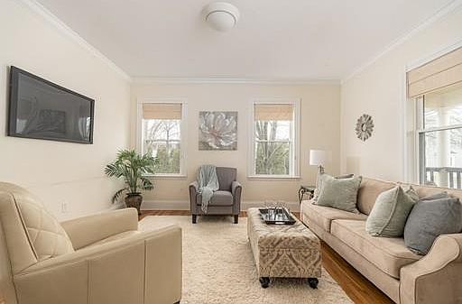 Original craftsmanship details are enhanced with fresh modern touches. The 1st floor features beautiful hardwood floors throughout, a light-filled living room, half bath & an updated kitchen with stainless steel appliances, island, recessed lighting, gas stove & granite countertops. The open-concept kitchen has a clear view of an elegant dining room, complete with a chandelier. The 2nd floor contains 3 spacious bedrooms & a full bath. Just steps up to the 3rd floor youâll find a fourth bedroom with a walk-in closet, which could also be used as an office or playroom. Head through the kitchen & out the door to relax on the private deck, which was redone in 2017, perfect for summer barbecues! Store extra items in the basement, or fix it up & create another hangout space. Off-street parking for 4 cars. Donât miss out on this opportunity to live in a well maintained home, with a new heating & central AC system installed in 2018. Located minutes from downtown Winchester & the commuter rail!