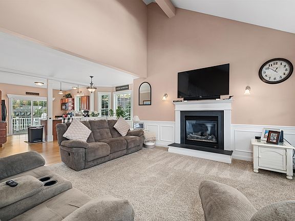 Welcome to this meticulously maintained cape, with every detail thoughtfully considered. Nestled in the exclusive Long Bay Association a gated waterfront community. Step inside and enjoy the open concept main level, featuring a bright living room with cathedral ceilings, plush carpeting and a cozy gas fireplace. The dining area is bathed in natural light from a large bow window, while gleaming hardwood floors flow into the kitchen, with ample cabinetry, granite countertops, and sliders leading to a private deck, perfect for BBQs and outdoor relaxation. Convenience is key, with a half bath and laundry room (washer & dryer included) just off the main living area. The primary suite features, a walk-in closet, en-suite bath with twin sinks and step in shower. Upstairs you'll find 2 generously sized bedrooms and full bath, ideal for family & guests. This home is designed for easy living, with central air, security system, vinyl siding, PVC trim, and composite decking for zero maintenance. The pristine landscaped yard is equipped with an irrigation system for effortless care. The oversized 3 car garage offers direct entry & ample space for all your lake toys. Don't miss your chance to live in this dream home in one of the area's most sought after community with a heated pool overlooking the lake, 2 crescent shaped beaches, a day dock, tennis, pickleball courts, basketball, walking trails, and much more. minimum 30 day rentals. Open houses Sat 10/19 10-1:00 & Sun 10/20 10-12:00
