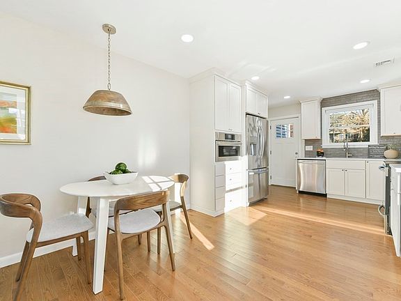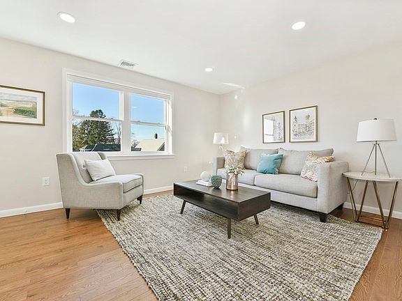 Gorgeous, brand new complete renovation of building. Light-infused tree-top views abound in this highly stylized 3 bedroom condo with two full baths. Primary suite includes en-suite full bath. Well known interior designer designed finishes and fixtures. Lovely kitchen with modern finishes, eat-in dining area, large living space and two additional generous bedrooms and a second full bath complete the floor plan. Laundry in unit. Private deck overlooks trees in a quiet oasis. Private driveway with two parking spaces. This property is on a quiet street, just steps to all the shops, restaurants and growing revitalization of Watertown's main street. Quick access to the city on public transportation.