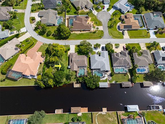 One or more photo(s) has been virtually staged. Experience the lifestyle of canal-front living in this nicely maintained pool home. Enjoy expansive water views, complete with a sparkling pool and a tranquil coquina rock waterfall. With 70 feet of frontage and a spacious 10' x 20' dock, it’s the perfect place to relax and take in the serenity of the water views. Inside, a 17' x 18' family room overlooks the canal, featuring a wall of windows that flood the space with natural light—ideal for entertaining or gathering with family. The living and dining rooms add comfort and versatility, while the primary suite offers an en suite bath designed to be handicap accessible. Recent updates include a widened driveway (16’ across for extra parking, 2021), new HVAC (2023), roof (2017), and updated dock wood (2012). With inviting stone accents, this home offers excellent curb appeal and a welcoming presence. Schedule your private tour today!