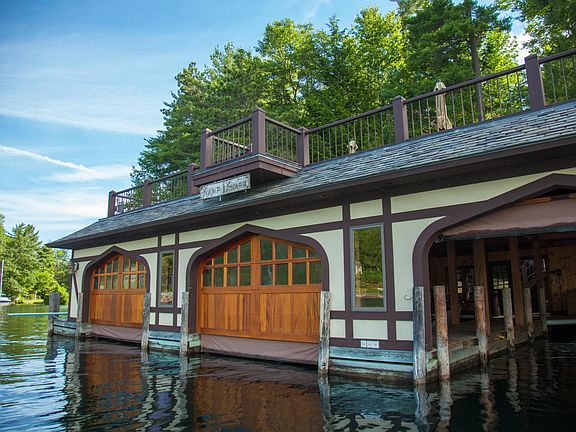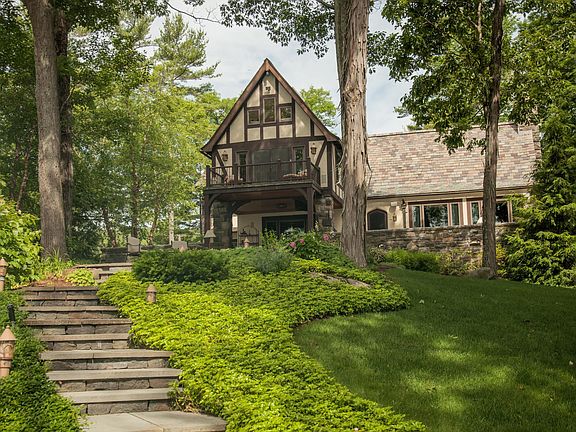 One of a kind, impressive restoration of the famous '' Van Zandt'' Estate. 6,000SF 5BR/4B/2 1/2 of unsurpassed quality. This elegant estate boasts A Tudor- style mansion, reminiscent of Lake George's Great & Gracious ,a 35x50 ft boathouse, 5 cookery areas, a carriage house w/movie theater & wine cellar,exercise room. The ultimate peninsula setting with rare most coveted southern panorama with over 645' of prime lakefront multiple patios , entertainment areas, magnificent stone work , even a mystical waterfall.