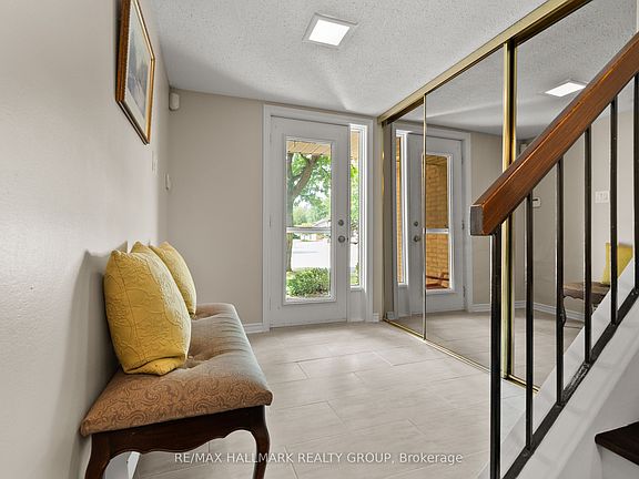 OPENHOUSE Thursday October 2nd, 4 to 6pm. BACKING ONTO GREENSPACE! BEAUTIFUL, SPACIOUS and RENOVATED 3 bedrooms plus den, 2.5 bath townhome, offering a perfect blend of modern elegance and everyday functionality in the highly desirable Pheasant Run community of Barrhaven. Bright and inviting, the living room features a cozy wood fireplace with a stylish herringbone tiled hearth, creating a warm focal point. A formal dining room sets the stage for entertaining, while the fully renovated eat-in kitchen (2020) impresses with a full wall of cupboards, sleek finishes, excellent workspace, and the added convenience of an in-unit laundry closet. Large windows frame peaceful views of the backyard and surrounding greenspace, extending the sense of comfort and privacy. Upstairs, a primary suite with a renovated ensuite bath (2021) and walk-in closet plus 2 additional comfortable bedrooms and a full bath (2022), all enhanced by a skylight that floods the level with natural light. The main floor is anchored by a large foyer that welcomes you in, and includes a versatile family room/den, currently used as an exercise room, complemented by a conveniently located renovated powder room (2025) making this level both practical and flexible. Additional updates include windows (2017), roof (2023), new A/C and furnace (2025), and all new flooring throughout (2025). Condo fees cover exterior maintenance including doors, windows, roof, grass cutting, snow removal, annual window washing, dryer vent cleaning, and common area landscaping perfect for a low-maintenance lifestyle. Enjoy walking distance to schools, parks, public transit, and the Walter Baker Sports Centre, with shopping, dining, and amenities nearby. Combining thoughtful updates with a practical layout and a serene greenspace backdrop. 41D Fable Street is the perfect combination of comfort, convenience, and community. Truly maintenance-free living just move right in!