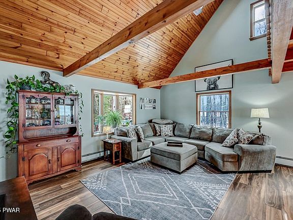 Situated on just over an acre on a quiet country road sits this lovely home featuring 3 beds and 2 baths. The current owners have been diligently improving the property and it shows!Home boasts a newer roof (with warranty) gorgeous knotty pined beamed ceilings, loads of natural light; new luxury vinyl plank flooring and carpets; an open floor plan, front AND rear decks and it's nicely set back for privacy. From the living room you can see the cozy upper level loft which leads to the ultra private primary suite with ensuite bath and large walk in closet; (note: the his and her doors. The lower level provides a lot of space for future expansion and currently features built in shelving that will make your storage organization a breeze. There's a one car garage, and plenty of exterior parking space for all the toys. And did we mention the pet and kid friendly fenced in back yard. The site is convenient to all that Lake Wallenpaupack and the Pocono Lake region has to offer; but also affords quick access to Route 84 if a metro commute is needed. What's not to love? Stop calling it a dream and start planning your escape by scheduling your showing today. This is one not to miss!