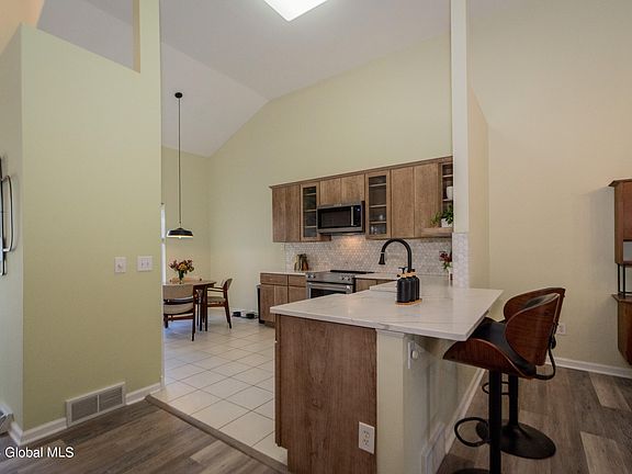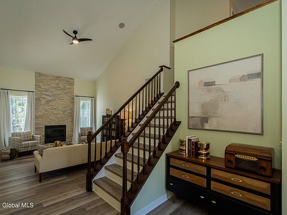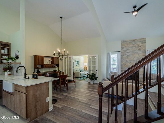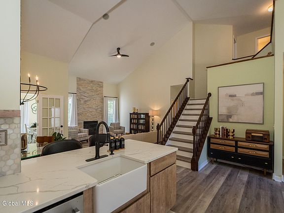 Discover the charm of this beautifully renovated home, where midcentury modern meets magazine appeal in a serene golf course setting. The remodeled kitchen boasts new appliances, light cherry cabinetry, and quartz countertops, complemented by a stylish breakfast bar. Each of the three bathrooms has been updated with new cabinetry, sinks, lighting, mirrors, and coordinating hardware. Enjoy the easy-care of new vinyl plank flooring throughout the home and new A/C unit. A new fireplace facade crafted from natural stone adds a touch of sophistication. With new lighting, the home exudes a warm, modern aesthetic. Step into the sunroom and newly refurbished deck, with the option to create a patio accessible through the finished basement. All located just minutes from downtown Saratoga Springs