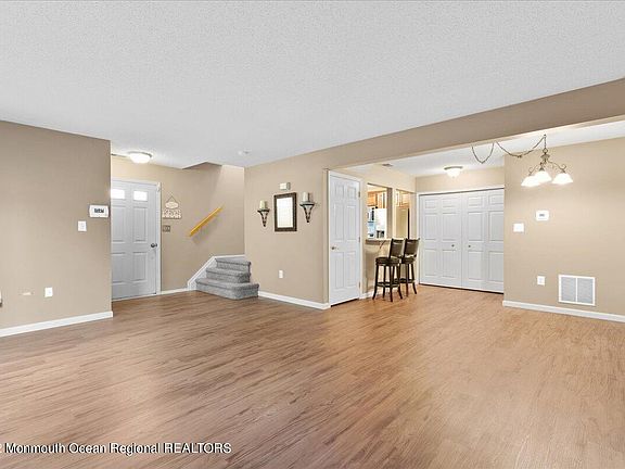 Welcome! Look Around! Fall in Love w/this Beautifully Updated Townhome Located in the Most Desirable Community in Tinton Falls! Featuring a Re-Designed Kitchen w/Stunning Quartz Countertops, Java-Stained Cabinetry, SS Appliances & Breakfast Bar off Dining Room. Large Open Living Room w/Laminate Floor & Slider to Private Patio Enclosed by Arborvitaes & Backing to Woods. Large Master Bedroom w/Walk-In Closet & Updated Master Bath. Nice Sized Second Bedroom w/Hall Bath. Third Floor Loft is Huge & Can be Used as a Bedroom, Office, Family Room or for Storage. Furnace/AC Unit Only 3 Years Old! Brand New Water Heater! This End Unit has Lots of Windows & Plenty of Privacy! Fiscally Sound Association. Newly Paved Parking Lots & Roads. Close to Beaches, Shopping & All Arteries of Commute!