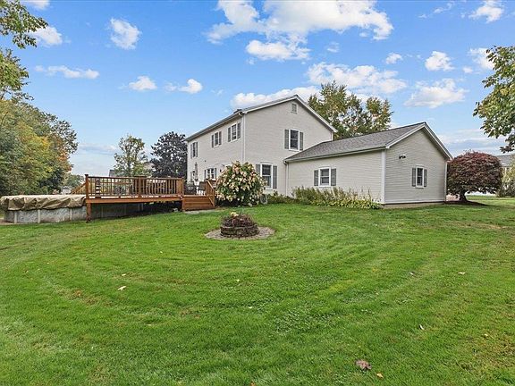 Meticulously Maintained Colonial in a Sought-After Neighborhood! Set on a beautifully landscaped .48-acre lot near the end of a quiet cul-de-sac, this 3-bedroom, 2.5-bath Colonial has been cared for with pride and it shows. From the inviting covered porch to the manicured grounds, every detail reflects thoughtful upkeep and timeless appeal. Inside, gleaming hardwood floors flow throughout the main level. A formal dining room/den offers flexible space, while the living room features a cozy fireplace with a gas insert—convertible back to wood if desired. The updated kitchen shines with quartz counters, modern cabinetry, and a slider leading to the expansive back deck and above-ground pool—perfect for summer entertaining. Upstairs, three generously sized bedrooms include a primary suite with skylight in the en suite bath. The finished basement adds even more living space, while new hardwood treads on the basement stairs showcase the attention to detail throughout. Car enthusiasts and hobbyists will love the oversized heated 2-car garage with a sink. Additional highlights include a brand-new roof (September 2025), central vac, and countless thoughtful updates. With schools and neighborhood paths close by, this home offers both convenience and serenity in one meticulously maintained package. Don’t miss this exceptional opportunity!