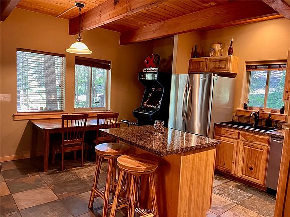 PineLoch Sun charmer! Turn key, Fully furnished pristine, completely updated Cabin on lg. corner lot! Exposed beams, wood-wrapped ceiling & cozy gas fireplace. Spacious 3 bedroom(2 bdrm septic) cabin features 1.75 baths, open concept kitchen w/ granite counters & island, gorgeous wood cabinetry & lots of storage. Balcony off Primary bdrm. Lg. Trex deck for summer BBQs. Nicely wooded lot w/ fire pit. 10X10 outbuilding perfect for toy storage. 2 snow mobiles, & Tv w/ surround sound covey to new buyer. Enjoy use of Pineloch sun lodge, pool, clubhouse & access to lake Cle Elum & miles of trails. Clubhouse address is 130 Beach club drive. Check it out & nearby Speelyi Beach @ Lake Cle Elum. PineLoch Sun is a seasonal access community.