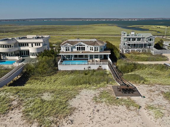 Affording the best of Oceanfront living on a shy 2 acre parcel, commanding a beautiful stretch of white sugar sand beach and surrounded by unparalleled panoramic sunrise and sunset views of the Atlantic Ocean and Shinnecock Bay is where you'll find this newly renovated and well appointed Hamptons Oceanfront Getaway. Boasting 2 levels of stylish Oceanfront living with 6 spacious bedrooms which include your perfectly positioned private Owners Suite with balcony and 5.5 custom baths. Enjoy multiple entertainment spaces with this stunning new Oceanfront playground, which has been exquisitely designed to bring the beauty of its natural environment into every room while embracing and blending those indoor and outdoor spaces effortlessly. Relax all summer long from your spectacular private beach located just outside your door with private dune deck and a sun-drenched heated saltwater Gunite pool wrapped in Bazilian Ipe. No hiking shoes or golf cart needed!