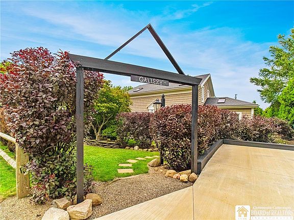 Charmingly renovated, this home exudes beauty through simplicity. Step into the heart of the house from the foyer. French doors lead to a bright living room with lovely views from every window. The family room features a built-in electric fireplace and skylights that illuminate the space with natural light. Enjoy morning coffee in the sunlit breakfast area, complete with a picture window. The primary includes a spacious loft living area with abundant natural light, perfect for a home office. The Gallery has been tastefully transformed into a guest cottage, offering additional privacy and accommodation for visitors. Unique design elements grace the lush gardens, providing a peaceful retreat. Impeccably maintained, the home showcases original cucumber wood plank floors and numerous updates including furnace, A/C, driveway, gutters, water heater, windows, insulation, and Certain-teed rough-cut hand-hewn vinyl shakes.A custom shed adds functionality. Ideal for downsizing, the property offers low maintenance living. Located on the Chautauqua Wine Trail in Lake Erie Wine Country, minutes from Chautauqua Institution and a short drive from Erie, PA, this is the perfect vacation getaway.