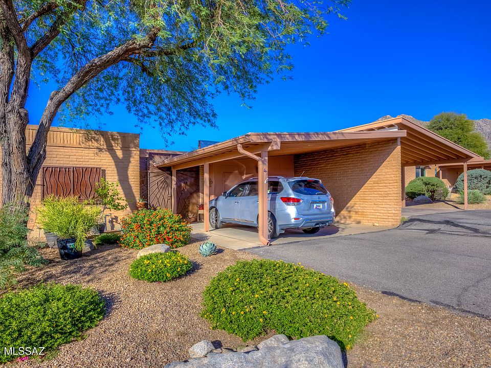 Curb Appeal & Move-In Ready! Charming 3BR/2BA townhome in Verde Catalina II! This single-level home features a one of a kind spacious floor plan with eat-in kitchen, covered patio, & low-care landscaping front & back. Remodeled to enclose front patio, opened up the kitchen to create a warm open floor plan, replaced windows, flooring throughout & updated bathrooms! Kitchen includes water purifier, under cabinet lighting, and newer appliances. Warm colors throughout. Each bathroom offers a walk-in shower. Enjoy a backyard to entertain friends with a shade provide by a pergola & generous covered patio, central A/C, & community pool access. Includes 2-car carport, & extra large storage closets. Conveniently located near shopping, dining, and top-rated schools in the Amphitheater Distric