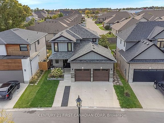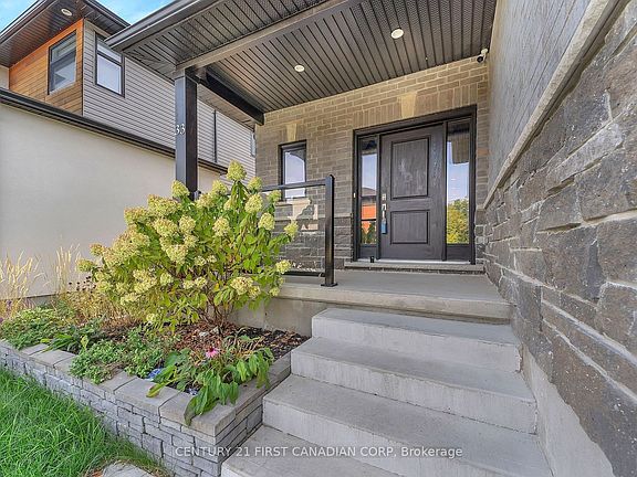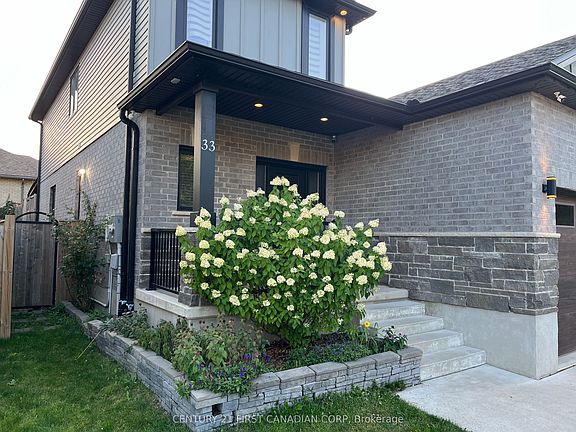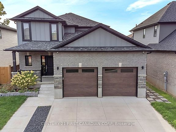 Welcome to this beautifully maintained 3+1 bedroom, 3.5 bathroom two-storey home in the highly sought-after community of Kilworth. Offering exceptional curb appeal with a concrete driveway, walkway, and a charming covered front porch, this home is truly move-in ready. Step into the impressive two-storey foyer that opens into a bright, open-concept living space. The family room showcases a cozy gas fireplace with stone surround, paired with oversized windows that fill the home with natural light. The chef-inspired kitchen is designed for family living and entertaining, featuring a large island with breakfast bar, stainless steel appliances, pot-filler, and abundant cabinetry. The dining area flows seamlessly to the backyard, perfect for summer BBQs. A main floor powder room, laundry, and mudroom with custom built-ins add convenience and functionality. Upstairs, discover three spacious bedrooms, including a luxurious primary retreat with walk-in closet and spa-like ensuite. The additional bedrooms are complemented by a stylish 4-piece bath. The fully finished lower level provides even more living space with a versatile rec room, an extra bedroom, a 3-piece bath, and plenty of storage. Step outside to a backyard designed for relaxation and entertaining, complete with an expansive sundeck and a pergola-covered hot tub area for year-round enjoyment. Additional highlights include neutral finishes throughout, pot lights, a carpet-free interior, and a double garage with inside entry. Situated just minutes from community amenities, parks, trails, and a golf course, this home is an exceptional opportunity in one of Kilworths most desirable neighbourhoods!