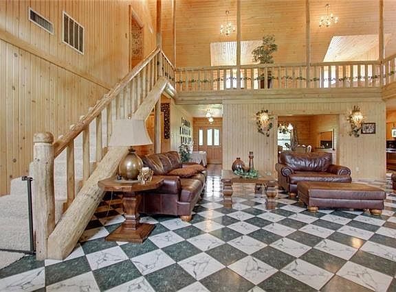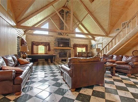 This log home is a stunning retreat situated on a cleared 4-acre lot, offering ample privacy and tranquility. With five bedrooms and three and a half baths, there is plenty of room for a large family or hosting guests. The classic design features beautiful exposed log beams, adding warmth and character to the home. The large living room area boasts cathedral ceilings, creating an inviting and open atmosphere. In addition to the expansive interior, there is a pond on the property with a gazebo. The outdoor area is perfect for entertainment, with ample space for gatherings and activities, making this log home a truly remarkable residence.