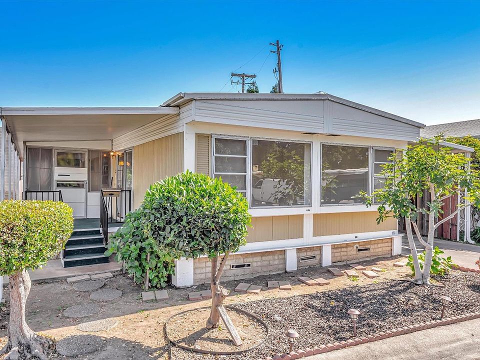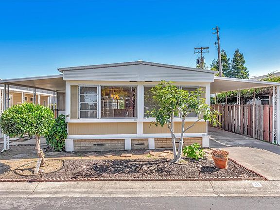 PRICED TO SELL!!! Be the first to discover a delightful home in the sought-after Paseo de Palomas, a resident-owned community for those 55 and older. This charming residence features fresh interior paint and luxury vinyl plank flooring throughout. The home offers two generous bedrooms plus an enclosed patio/sun room perfect for relaxing and enjoying a good book (or useful for additional storage). The open-concept living room, dining area, and kitchen are bathed in natural light, creating a spacious atmosphere. The master bathroom includes a make-up desk and extra double closet space. Additional amenities include two storage sheds in the private yard and nearby guest parking. Nestled among majestic trees and scenic greenbelts, Paseo de Palomas is a serene retreat close to Pruneyard, downtown Campbell, the Los Gatos Creek Trail, and a variety of shopping and dining venues. Resident-owned park, no landloard securing long lasting enjoyment of your home. Park approval for buyers and a one-time $15,000 buy-in fee are required.