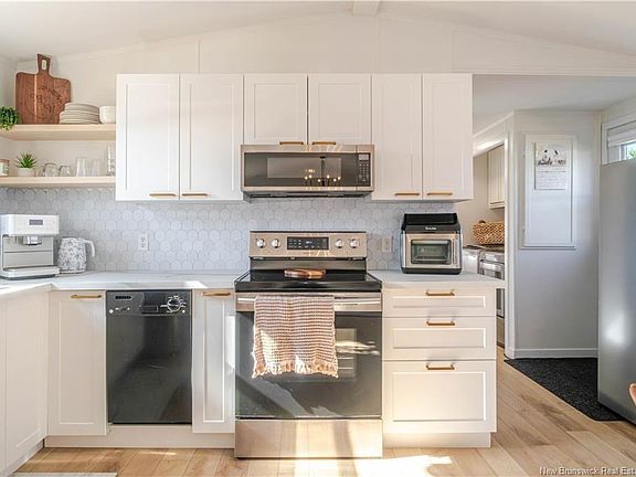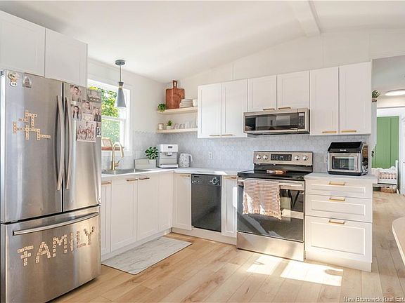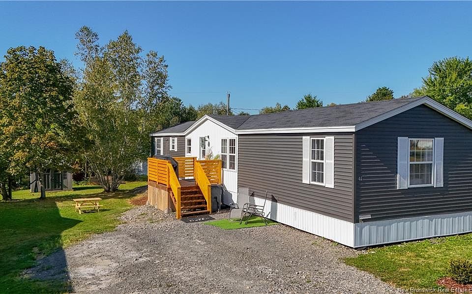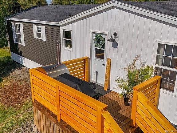 This beautifully renovated mini home has been updated from top to bottom, inside and out, offering a fresh modern look and true move-in readiness. The professionally painted vinyl siding is accented with striking board-and-batten detailing at the front, giving the exterior an inviting charm. Step onto the refinished deck and you’ll immediately sense the care and attention that has gone into every detail. Inside, the transformation continues with a brand-new kitchen featuring all new cupboards, a smarter and more practical layout, a stylish backsplash, and even a newly installed dishwasher. Throughout the home, you’ll love the all-new flooring, updated light fixtures, bathroom vanities, and efficient baseboard heaters. Every wall has been professionally painted, creating a bright and welcoming space for its next owner. The spacious primary bedroom easily accommodates a king-sized bed, while the two additional bedrooms share a convenient Jack-and-Jill half bath—perfect for family living. The sellers have cherished their time in this lovely neighbourhood but another opportunity came up that better suited their family. Children in the area attend the brand-new Hanwell Park Academy through grade 8, adding to the appeal of this fantastic location. This is more than just a renovation—it’s a true transformation, ready for you to call home.
