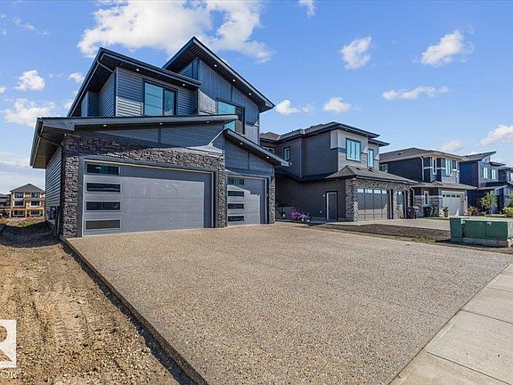 Welcome to Fenwyck! Located in one of Spruce Grove’s elite communities, this stunning 8-bed, 6-bath masterpiece is designed for multi-generational living! Featuring a WALKOUT BASEMENT w/ LEGAL SUITE, SPICE KITCHEN & SECOND KITCHEN & offering breathtaking LAKE & SKY VIEWS! The living rm features soaring 20-foot ceilings, expansive picture windows & floor-to-ceiling feature wall w/ a modern fireplace! The Gourmet Chef's Kitchen boasts MARBLE COUNTERTOPS, custom cabinetry & designer backsplash + a SPICE KITCHEN! The dining room gives PATIO access for lake & sky views! ! A full bath & BEDRM/OFFICE/DEN complete the main floor! Upstairs, the BONUS ROOM features open-to-below design. The luxurious primary suite incl. a PRIVATE BALCONY, 5-piece spa ensuite & walk-in closet. 3 add. bedrms incl. a separate fulL bath! The walkout basement is a legal suite with permit can be a mortgage helper or in-law suite! EV CHARGER IN GARAGE! ROUGH IN FOR A/C, SPEAKERS, GARAGE HEATER & SOLAR PANELS!
