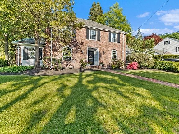 Welcoming brick-front Center Entrance Colonial in desirable Waban. Steps to the new Zervas School, this gracious 11 room, 4 bedroom, 3 full bath residence is awaiting your personal touch. The first floor of the home has an inviting foyer leading to the sun-filled front -to-back living room with wood burning fireplace and picture window overlooking the fenced in backyard. Off the living room is a four season sun-room with sliders to the back deck and patio. This level is complete with a hostess-sized dining room, eat-in kitchen with stainless appliances, coffered ceiling family room w/built-ins and access to yard, office, full bath & mud room. The second floor is comprised of a master suite with three closets and full bath, three additional bedrooms and a family bath. The finished lower level has a playroom with a fireplace and a mechanical/utility/storage room. The home also has an attached two-car garage. Convenient location to Cold Spring Park, the 'T",shopping and major routes.