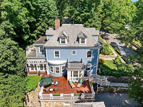 Pristine 1896 Victorian w/ quality craftsmanship & architecture located one block away from the heart of Newton Centre. This 5-6 bed 4.5 bath home w/ extensive renovations boasts 3500 sf of sun-drenched living area w/ 13' ceilings & detailed finishes. Tiled vestibule w/ radiant floor heating leads to gracious foyer expanding to the double parlor living room w/ hand-carved 9' pocket doors. Rare oval shaped dining room w/ original curved glass windows & gourmet eat-in kitchen. French doors lead to a private outdoor space w/ patio, hammock garden & 850 sf mahogany deck. 2nd level w/ 2 guest beds sharing a balcony and full bath w/ laundry. Additional 3rd bed on 2nd level w/ ensuite bath, steam shower & walk-in closet. 3rd level primary suite w/ full bath & previous guest room converted into a walk-in closet. Finished basement w/ full bath & 2nd laundry area. 750 bottle walk-in temp. regulated wine room & whole house air exchanger/humidifier. Enjoy luxurious living in a prime location.