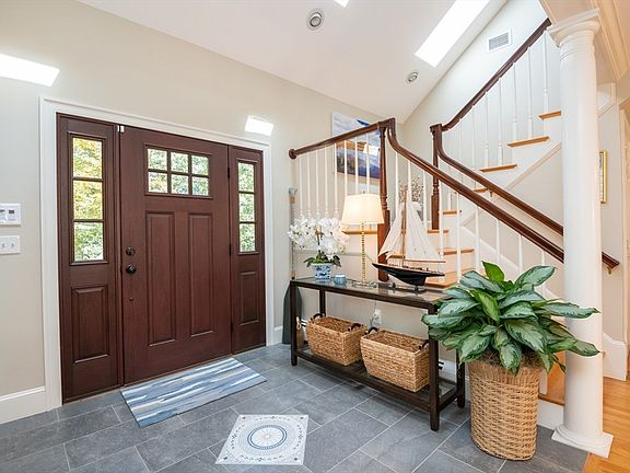 This custom-built Cape showcases meticulously landscaped gardens, dual primary suites, and extensive updates throughout. A beautifully tiled foyer opens to a sunny living room featuring hardwood flooring, built-in bookcases, and a marble-surround gas fireplace. The chef’s kitchen is outfitted with marble countertops, a large island, custom cabinets, double ovens, 6-burner Thermador stove. Even the laundry room is beautifully updated with large granite sink and a substantial pantry for additional storage. The 3-season sunroom provides panoramic views of the grounds sprinkled with night lighting, complemented by a pergola-covered patio. The 1st-floor primary suite includes dual walk-in closets and elegant bathroom with a soaking tub. Upstairs, discover another primary suite plus 2 additional bedrooms. Additional amenities include a finished basement with 1/2-bath, a heated 3-car garage, sprinkler system, EV charging outlet. Move right in and enjoy everything Ipswich has to offer.