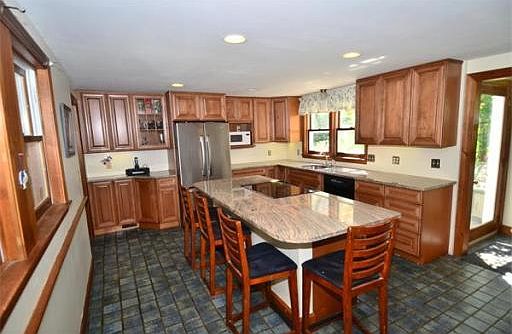 Country living in a picturesque brick rambling cape boasting hardwood floors throughout, striking 29' country kitchen with maple cabinets and gleaming granite counters, lg fpl living room, wainscotted dr with large windows overlooking gardens, sunroom, newly renovated fpl fr, lg skylighted mbr with jacuzzi in bath and closet walls,2 other bedrooms sharing bath plus large loft with exterior balcony, wonderful open yard complete with pool and 2 stall barn, pergola, attached garage, shed,