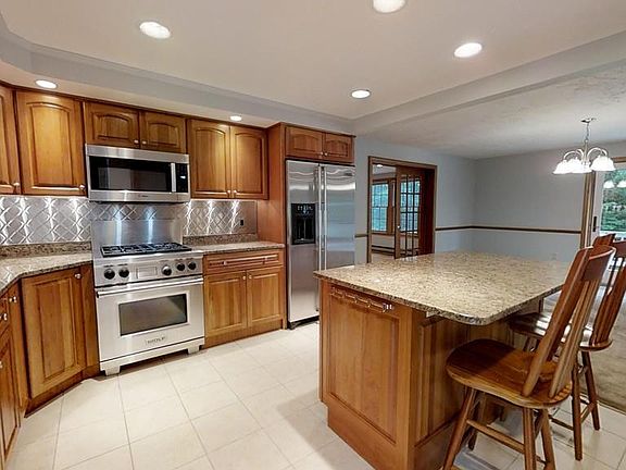 BEAUTIFUL 4 bedroom, 2.5 bath Cape nestled on 9 acres. This is a perfect home from entertaining. Large updated kitchen with beautiful cabinetry, granite counters, kitchen island, recessed lighting, large pantry, under cabinet lighting, stainless steel appliances, & Wolf gas stove. Large family room with lots of natural light, hardwood floors and connection for a wood stove. Large open concept living room/dining room with recessed lighting, gas stove and large deck with power awning overlooking the spacious backyard. Office on first floor that could be a 5th bedroom. Large master bedroom with bath, large closet and cedar closet. Full guest bath on 2nd floor. Spacious professional landscaped yard with irrigation and fenced in section. Large shed with plenty of storage and walk-out basement. This home won't last long. Make an appointment to see this gem.