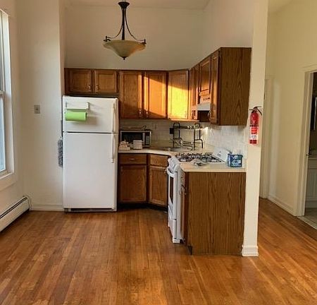 Second Floor Condo featuring 1 Bedroom, Den, Living Room, Eat in Kitchen, Full Bath. Hardwood floors throughout. Near Bay Street Train Station. Pet Free & Smoke Free building.