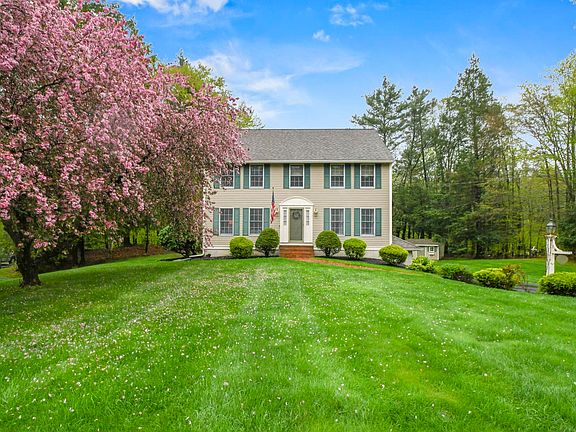 Welcome to this beautifully maintained 3-bedroom, 2.5-bath Colonial nestled on a serene 1.83-acre lot. A charming brick pathway leads you to the front door where you’re greeted by a warm and inviting living room featuring gleaming hardwood floors and a cozy fireplace with a wood stove insert. The spacious kitchen boasts ample cabinet and countertop space, stainless steel appliances, and a sunny dining area with a sliding glass door that opens to a deck—perfect for entertaining or enjoying peaceful views of the backyard. A formal dining room with hardwood floors offers an elegant space for gatherings, while a convenient half bath and laundry room rounds out the main level. Upstairs, the primary suite impresses with a large walk-in closet and private bath. Two additional bedrooms, each with generous closet space, and a full bath provide plenty of room for everyone. There is plenty of storage area upstairs in the walk-up attic that could potentially be used as a future finished space. Head outside and enjoy the expansive backyard, complete with a patio area, storage shed, and a tranquil babbling brook. This home is set on a quiet cul-de-sac in an established residential area conveniently located near local amenities and public schools and close to major highways. This property provides flexible living options to suit a variety of needs. With nothing left to do but move in. This home is ready for you to start making new memories today!