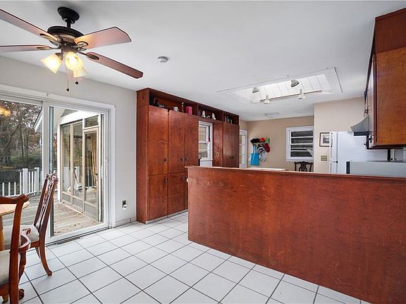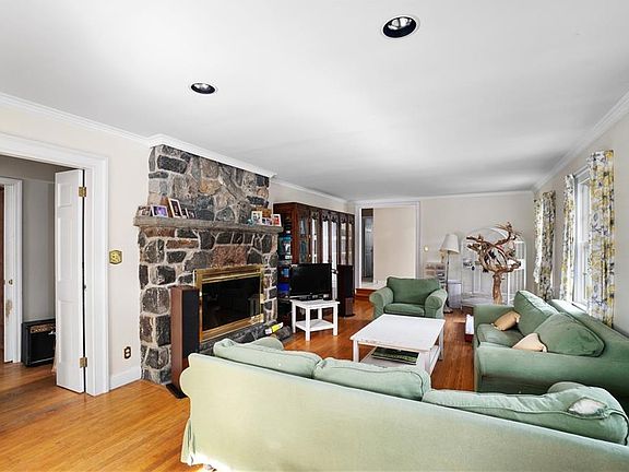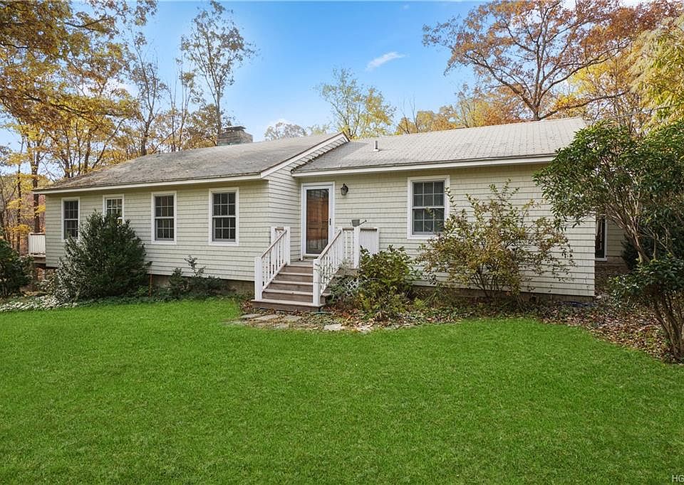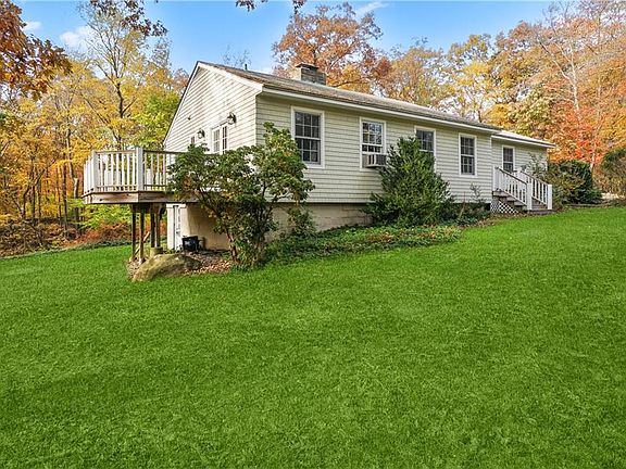 Privately set on two level acres and surrounded by stone walls and mountain laurel, this home has great expansion possibilities. The spacious living room features a stone fireplace. Eat in kitchen has skylights and doors leading to the deck. House will be sold AS IS.