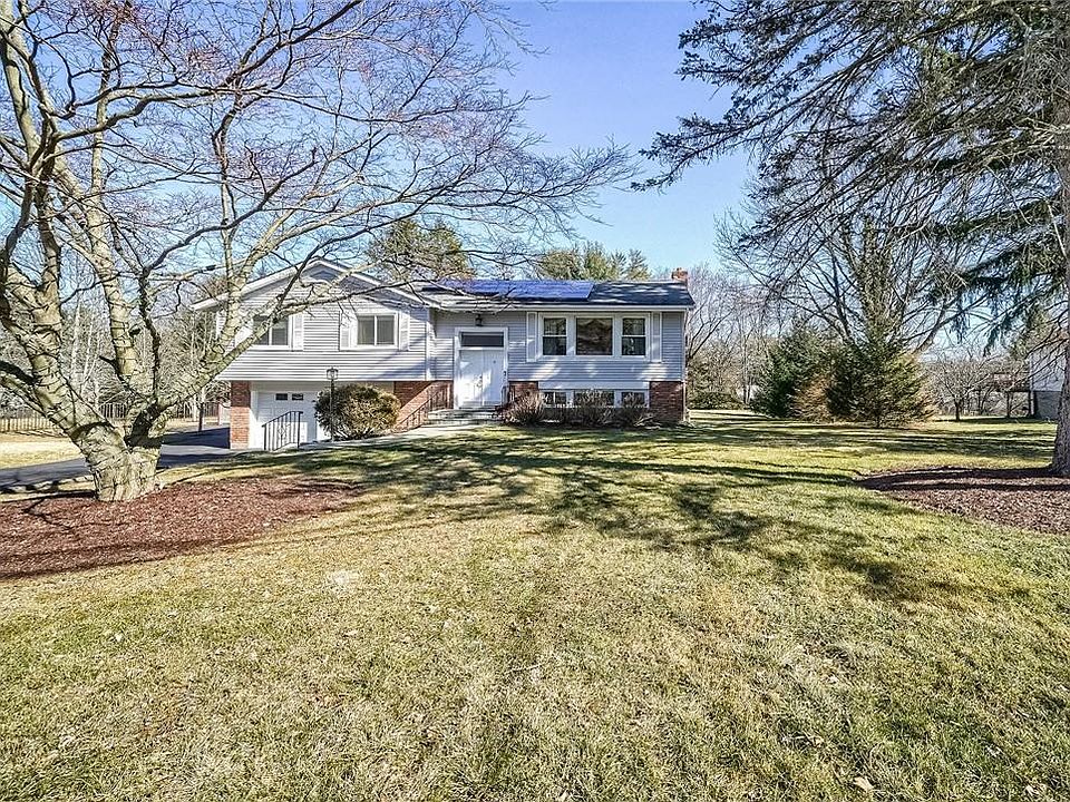 Spectacular Contemporary Flair Raised Ranch, just move right in, absolutely nothing to do, totally updated, room for extended family for sure. This four bedroom, three bath, home offers: Living room and Dining Room with vaulted/beamed ceilings and Recessed Lightning, Dining Room has slider to oversized outside deck. Primary Bedroom with Primary updated bath, Beautiful Kitchen with Ceramic tile flooring with Quartz counter tops, top of the line stainless steel appliances, Sun Room, off the kitchen with LVT Flooring, sliders out to Large deck with Trex flooring, which overlooks .60 of an acre of level park like property, hardwood flooring main level. Lower Level: Family Room or Guest suite/ Home Office/ Au-pair suite, walk in closet, Laundry, Garage, Separate door out from lower level. Roof was updated in 2012 when Solar Panels were installed. New Windows, New Furnace/Boiler, Alarm System, New Driveway, Central A/C. Home is equipped with the Ring Camera System Throughout, New interiors and exterior doors. Summer Fun at Briarcliff Recreation, Pool & Tennis and much much more... Additional Information: ParkingFeatures:2 Car Attached,