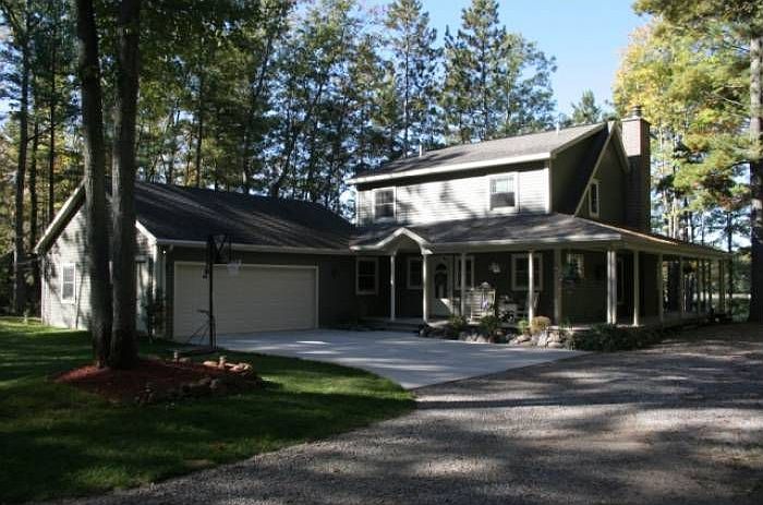 Lake Front Living on beautiful High Lake! Cape Cod lake front home with 3 bedrooms and 2 1/2 baths. 122 Feet of lake frontage with a firm sandy bottom. Everything you need on the main level including the master bedroom and laundry room. Attached two car garage and a detached two car garage with an upstaris finished bonus room/man cave. The house comes with a brand new custom vinyl dock. Within walking distance of Peegeos Restaurant and a convience store. The basement and bonus room are not included in finished square footage. Set up a viewing before this home slips away from you!