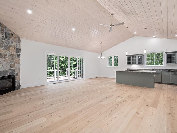 Welcome to Highland Street — a rare chance to own a beautifully crafted, low-maintenance home in downtown Meredith. Built by an award-winning builder, this custom residence merges craftsmanship, efficiency, and comfort mere steps from Meredith’s shops and eateries. Set on a scenic lot framed by classic stone walls, the home offers a private backyard retreat yet remains walkable to everything downtown offers, plus Meredith beach rights for recreation. Inside, the open-concept main level boasts European oak floors and a vaulted great room with wood ceilings, a floor-to-ceiling stone fireplace, and expansive Pella windows that bring the outdoors in. The kitchen features glass uppers, a generous island, leathered granite, and a seasonal lake view from the sink. Step onto the deck and enjoy the serene yard. The main level provides two bedrooms, including a primary suite with tray ceiling, luxury bath, and a custom walk-in closet. A second full bath with a 6-foot soaking tub serves the additional bedroom—ideal for guests or a home office. A dedicated laundry adds convenience. The finished lower level hosts a large family room, spacious bedroom, ¾ bath, and ample storage—perfect for guests or a private suite. Additional highlights include a 24×24 two-car garage, energy-efficient systems, and quality you feel the moment you walk in. Seller credit for appliances. Landscaping to be completed once asphalt has cured. Sale subject to final inspection by code enforcement. Agent Interest