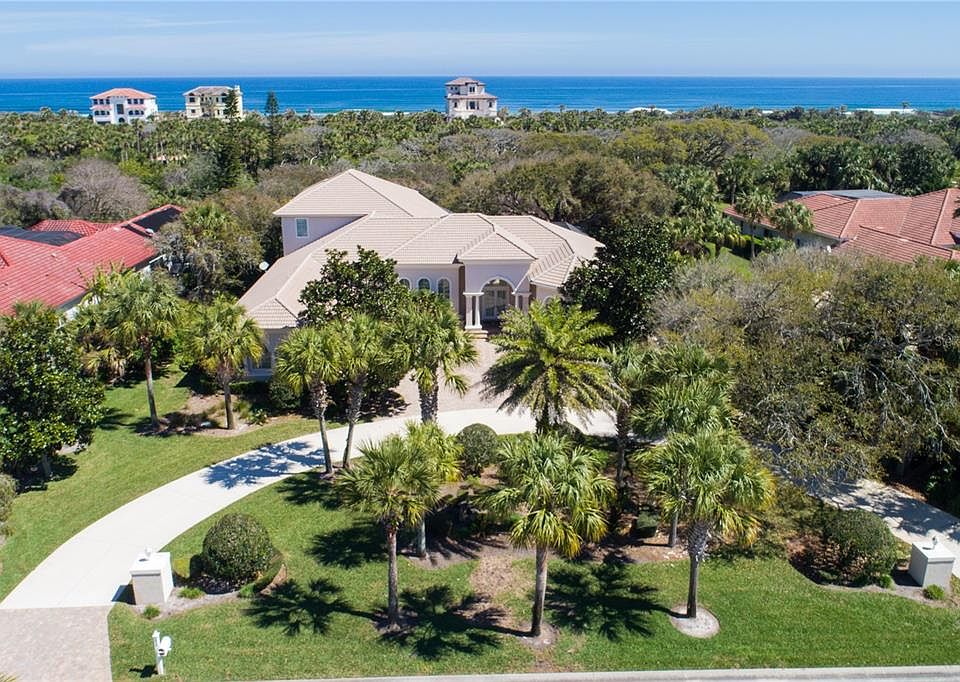 Don’t miss this rare purchase opportunity on the Florida Canal in the Gated, Guarded, Private Community of Island Estates, a true island neighborhood of the Oceanfront Golf Community of Hammock Dunes on the Barrier Island in Palm Coast! This one owner, 4 BR 4.5 Bath Mike Machin home was built in 2007 on 1.445 acres of river front land five minutes from the private community oceanfront beach. The residence property supports scores of luxurious Florida Oaks in a picture book setting for the custom dwelling. Those familiar with Machin homes know that these houses define quality. Built for the current owner, this grand two-story, in-ground pool home features a three car attached garage, highly functional kitchen, dining room, family room, living room, primary suite, two extra bedrooms, office and laundry on the first floor. Access to the screened in ground pool and lanai is conveniently located throughout the first floor layout. Ride the elevator to the Theater/entertainment room, 4th Bedroom, ample storage and large outside deck on the second floor. Machin employs high, architectural tray ceilings, wood floors in open areas, oversize doors and abundant use of moldings and trim throughout the home. Ensuite baths are evident in all Bedrooms. The property also offers a private boat dock on the canal. Photos accompanying the Listing include shots of amenities owned by the Hammock Dunes Club which are not included with this offering. Membership in the exclusive Hammock Dunes Club is however available separately from this offering. Some furnishings shown in the pictures are negotiable.